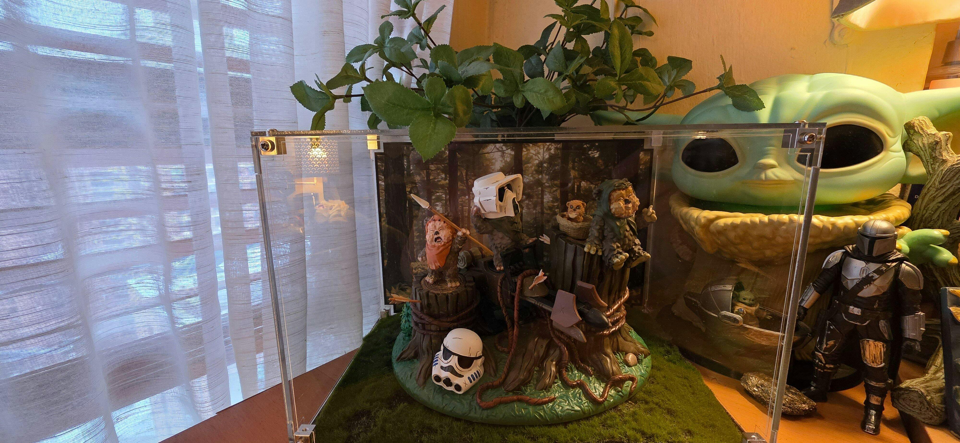 Absolutely perfect! The details and background forest picture is so awesome. It looks amazing when the sun light shines through it. I was able to place an Ewok figurine in it and add some fake grass to make it go well with the background picture , as well as a artificial plant behind the display case to make it look more like the background trees are popping out 😁😂 It somewhat works .. here's two pictures I hope it makes sense and you like the set up.
