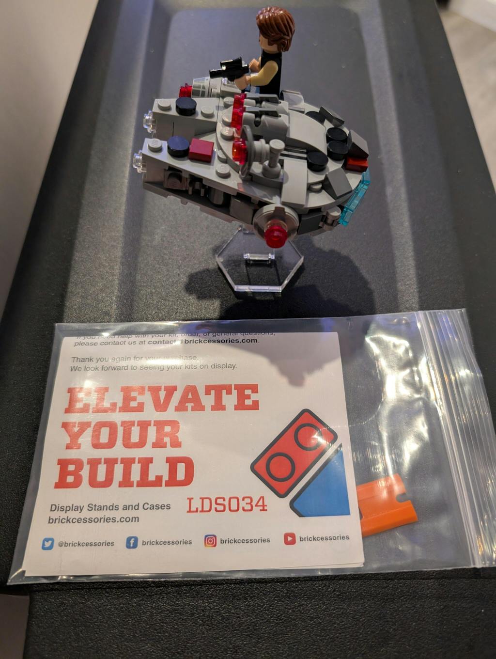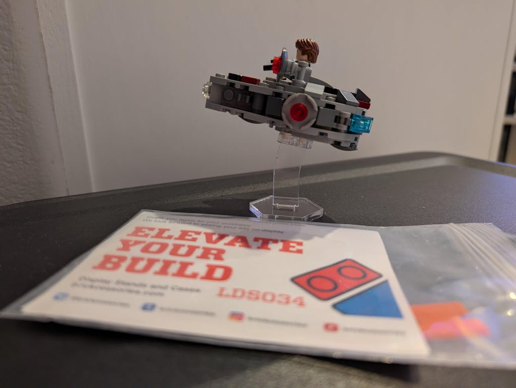 Upgrade your LEGO® Star Wars™ collection with this display stand custom-designed to work with LEGO® set 75295 - Millennium Falcon Microfighter.