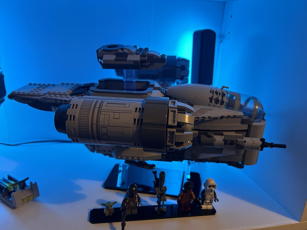 Upgrade your LEGO® Star Wars™ collection with this display stand custom-designed to work with LEGO® set 75292, The Razor Crest™. It features one main stand as well as a base to hold 5 minifigs. Also includes a genuine LEGO® transparent brick to display escape pod in launch mode.
